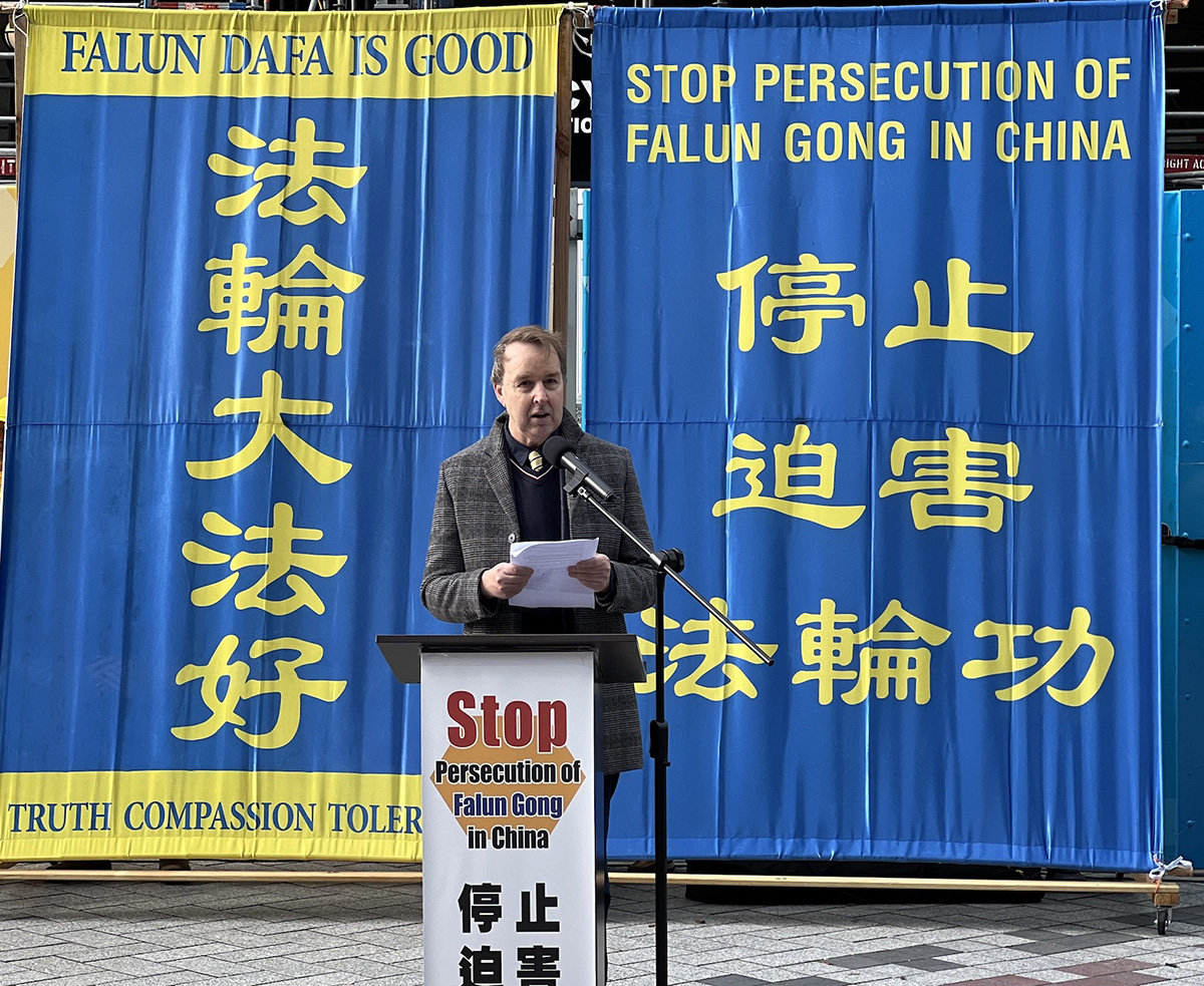 新西兰人权律师凯瑞·高尔(Kerry Gore)在集会发言中说:“中国大陆的法轮功学员受到各种形式的迫害。非法逮捕、非法拘留、长期羁押、隔离监禁、拒绝法律代表、暴力殴打、剥夺睡眠、水刑、身体酷刑、心理酷刑,以迫使修炼者放弃他们的精神信仰,精神酷刑是指使用未知的精神药物,对中枢神经系统造成永久性损害,还有强迫劳动、以及非自愿活摘人体器官——这是一种国家认可的谋杀形式。而这些迫害都被世界多个独立机构记录在案。”