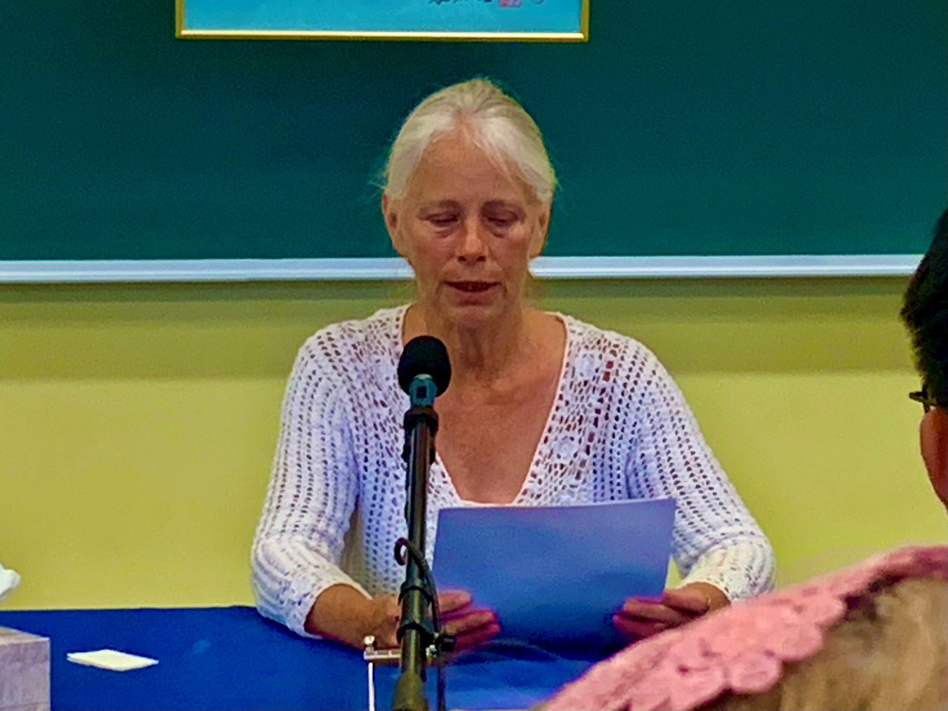 科利斯托尔(Crystal)参与了挂门把。在交流会上,她交流了自己在一个个困难面前修炼提升的经历。她说,第一次出去挂门把,腿就抽筋了,两个膝盖发直。通过炼功,逐渐好了。一个冰雪天,她出去挂门把时在一家住户的车道上摔倒。当时,她脑子里很快想起师父的法,她站了起来,继续坚持做完挂门把。
