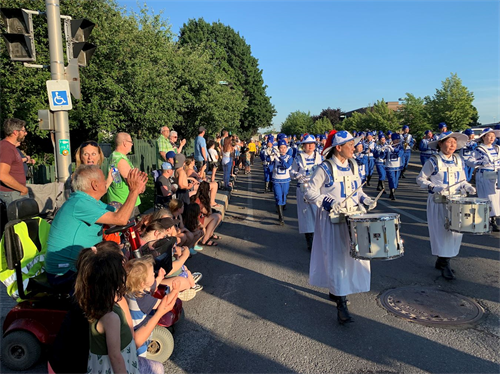 第一次看到法轮大法游行队伍的勒提艾克(Letiecq)女士说,这是游行队伍中最棒的,让人看不够,“他们(天国乐团)是最好的,音乐棒极了。”她还说,“他们散发出的能量很美好,让人身心都很舒坦。祝贺他们。”