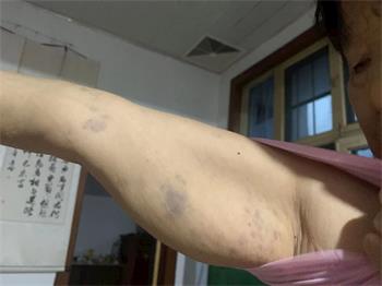 张爱荣回家后三天还昏昏沉沉的,精神不好,而且她身体多处淤青淤紫(下图)。