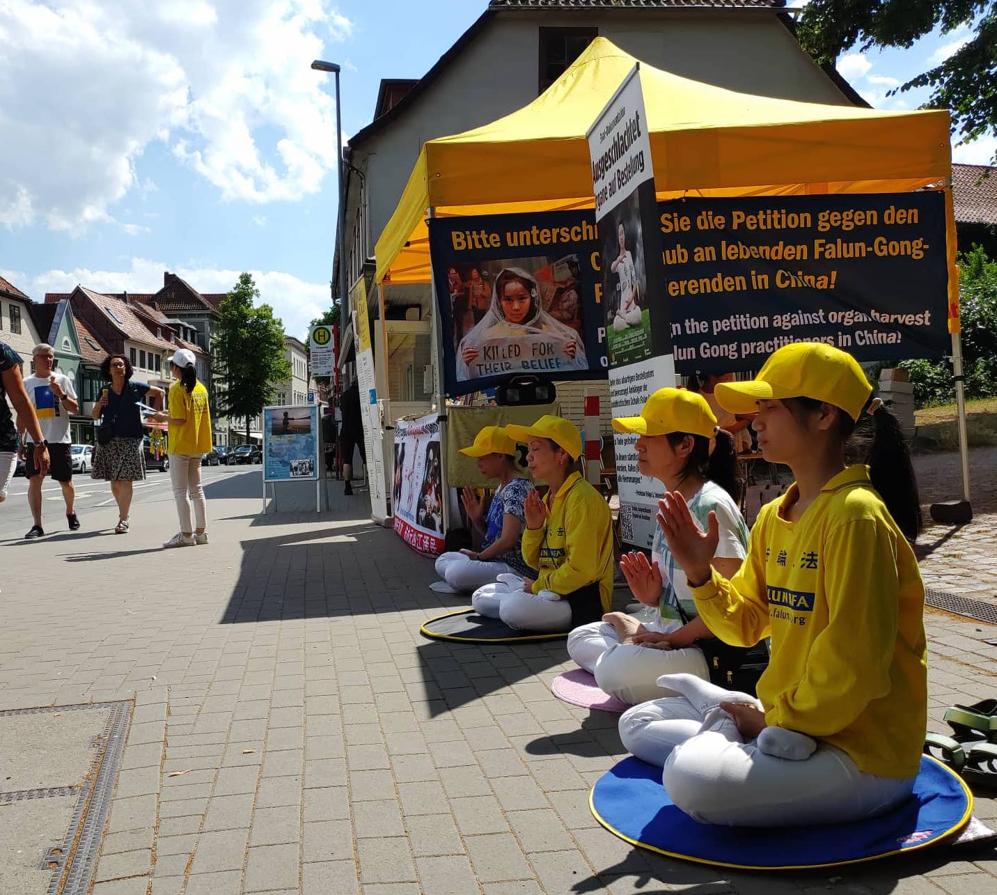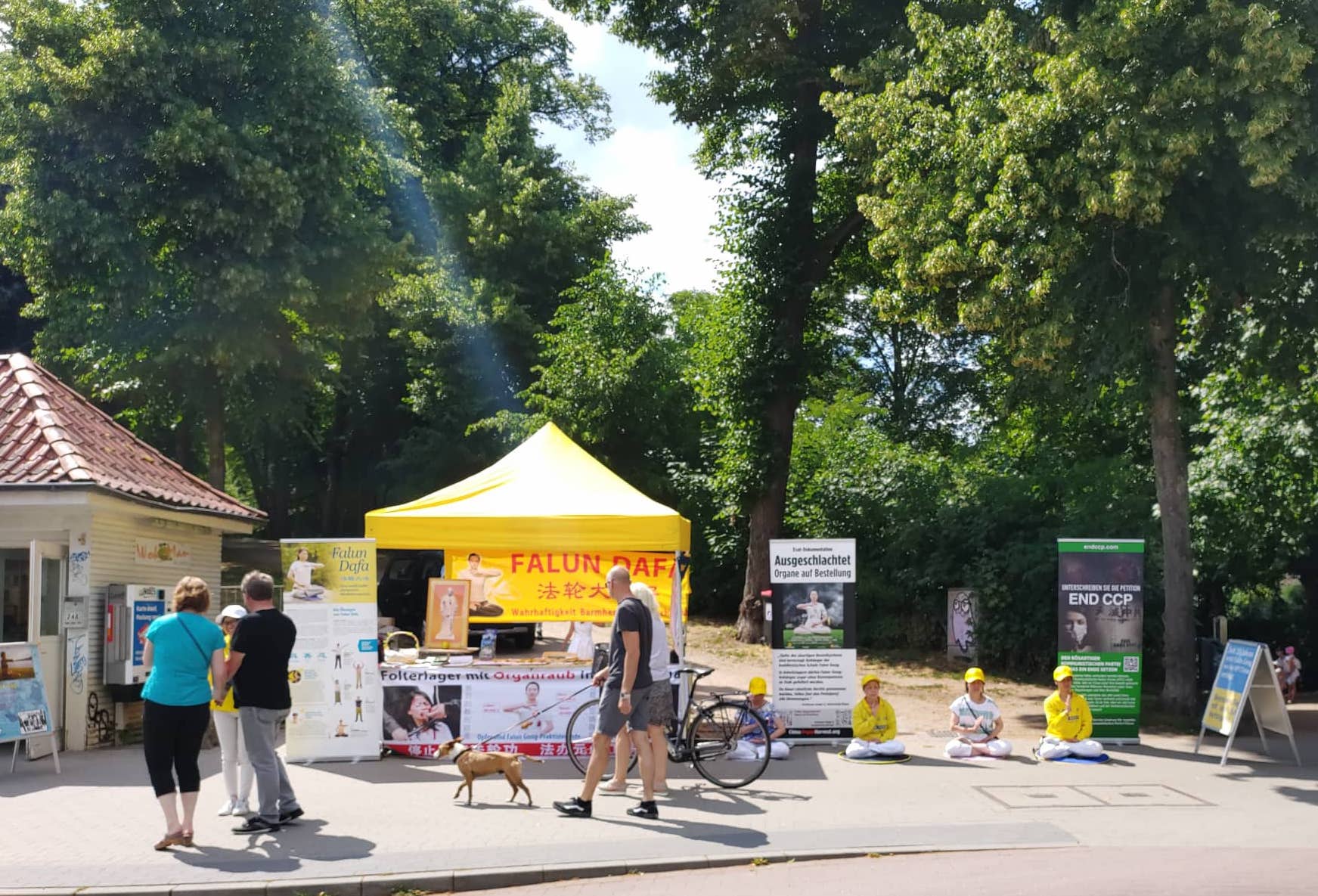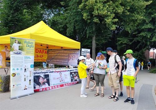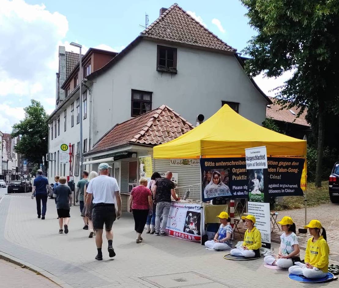 【明慧网二零二二年七月十日】(德国明慧记者站报道)二零二二年七月三日是德国吕讷堡的艺术日,时逢周日,商店特例开门,吸引了周边城市的民众。法轮功学员首次在此举办传递真相活动,很多人以前没有听闻过法轮功,但了解了真相的民众,纷纷签名支持学员反迫害