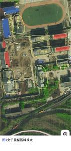 各监区位置分布如上图:八监区在食堂楼的4楼;医院监区在医院楼;文艺监区、五监区、六监区、后勤监区、集训监区在1号楼。一监区、二监区、三监区、十监区在2号楼。四监区、七监区、病犯监区在院外;医院对面的房子是监狱的小号。(上图中红顶和蓝顶建筑为翻新扩建的监舍楼,二零二一年底投入使用,监区分布有所调整,八监区搬到新楼,但集训监区原位置没动。)