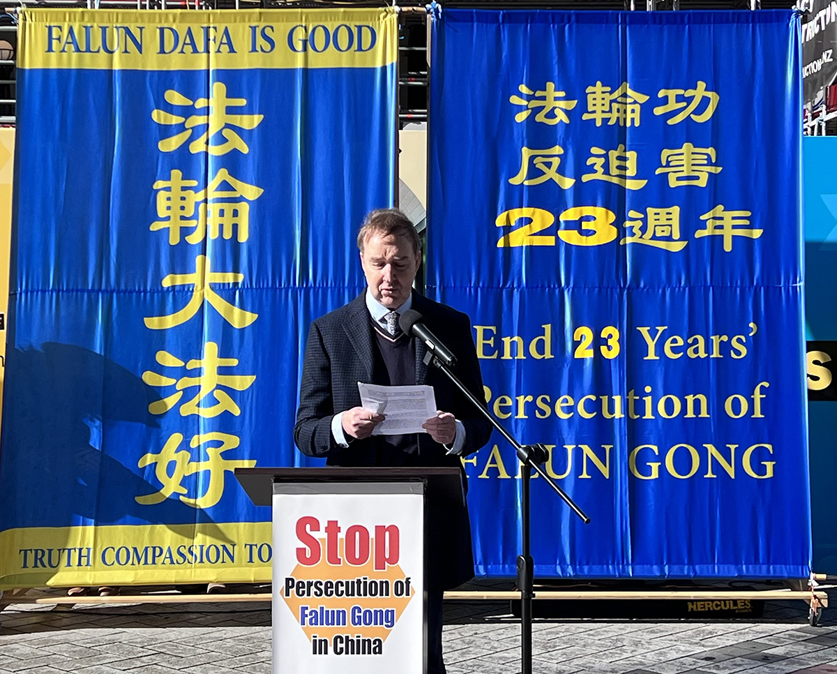 新西兰人权律师凯瑞·高尔(Kerry Gore)在集会发言中说:“中共对中国法轮功学员长达二十三年的迫害是史无前例的。这场残酷的迫害已被独立组织记录在案,如大赦国际、人权观察、自由之家、联合国难民事务高级专员办事处(UNHCR)、联合国酷刑问题特别报告员办公室、美国国会中国问题执行委员会、美国国务院在其年度人权实践国家报告中,以及美国国际宗教自由委员会(USCIRF)等等。”