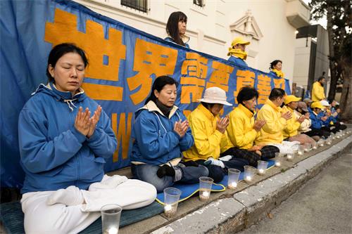 ![]() 图1~10:旧金山法轮功学员举行烛光悼念 |