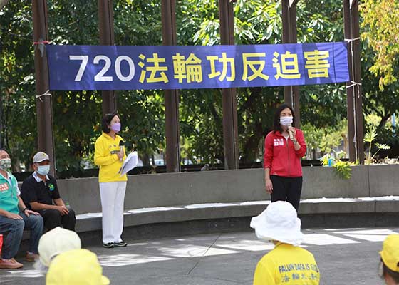 二零二二年七月十七日,“法轮功反迫害二十三周年 天灭中共 结束迫害”记者会在台湾宜兰市中山公园举办。