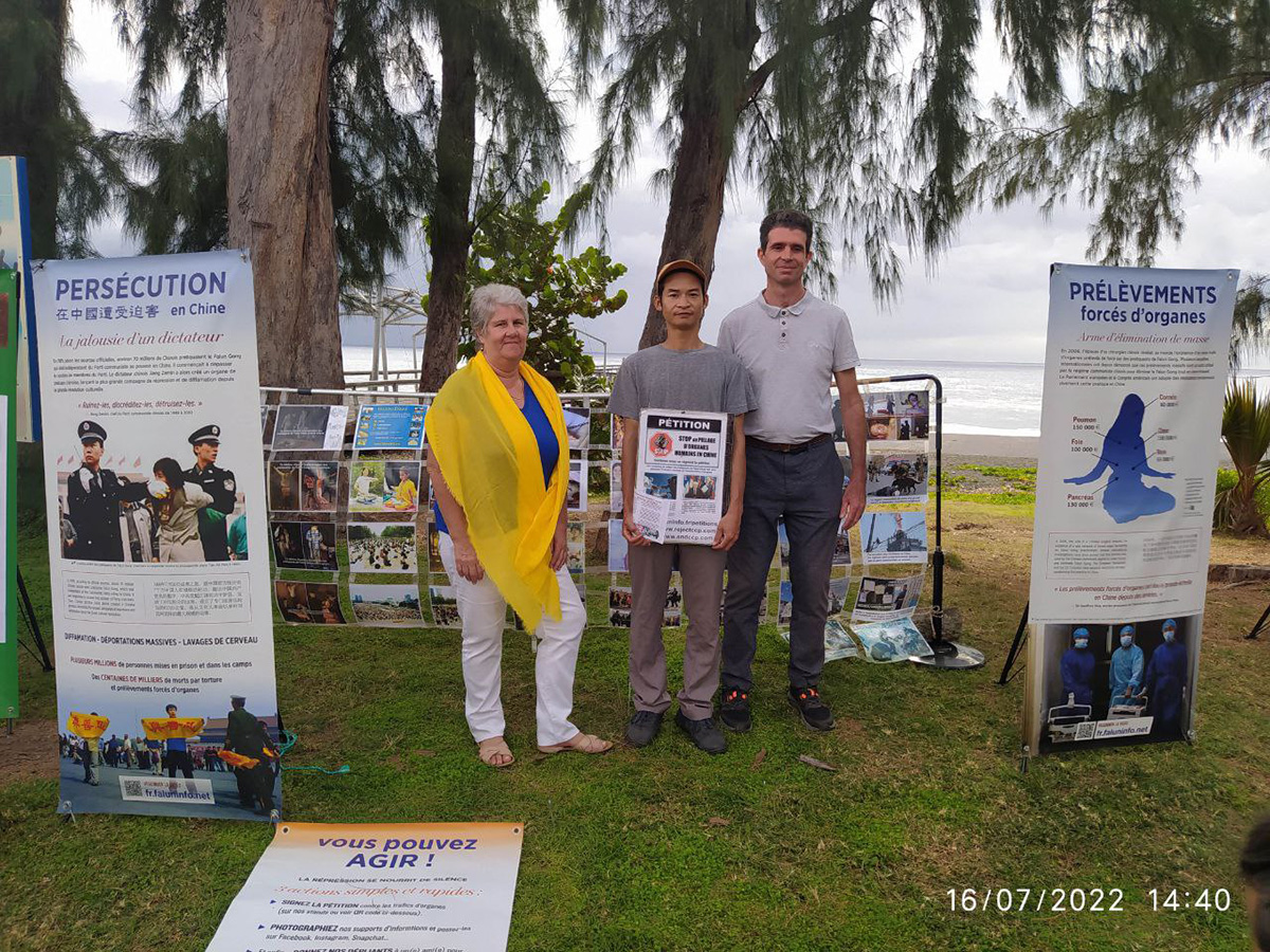 七月十六日(星期六)上午,法轮功学员在法国海外省留尼旺岛(La Réunion)的圣保罗(Saint-Paul)港口向过往民众讲述法轮功反迫害真相。使当地很多居民认识和了解了法轮功学员在中国遭受的残酷迫害这一事实。