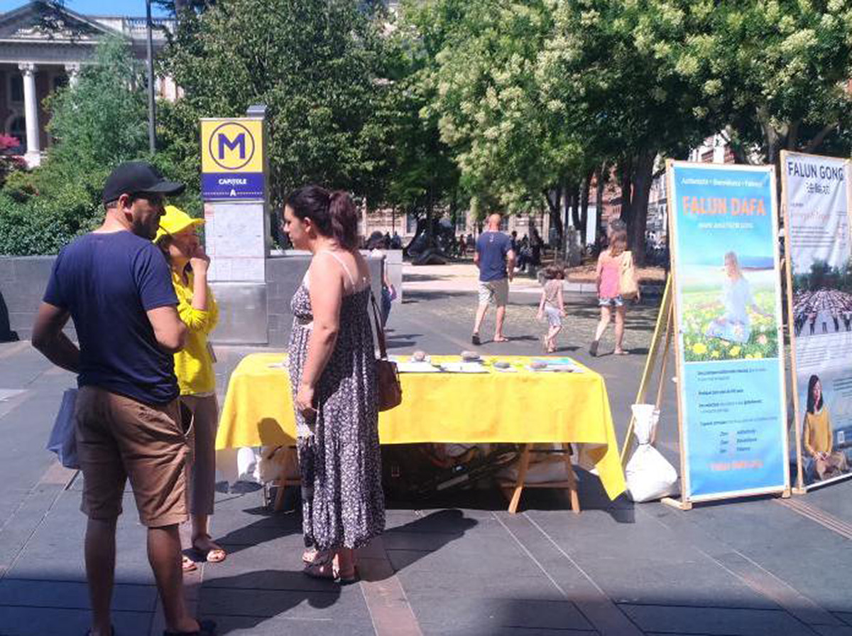七月十六日,在图卢兹市戴高乐广场(square Charles de Gaulle),法轮功学员进行了讲真相和征签活动。