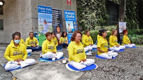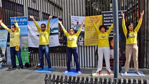 ![]() 图1~2:墨西哥法轮功学员在中领馆前发正念 |