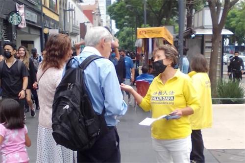 随后,法轮功学员前往墨西哥城历史中心进行功法示范,同时向路人发放资料,讲述法轮功在中国遭受的迫害。当地法轮功学员还与民众分享了修炼的美妙,表演了腰鼓舞,受到民众的喜爱。