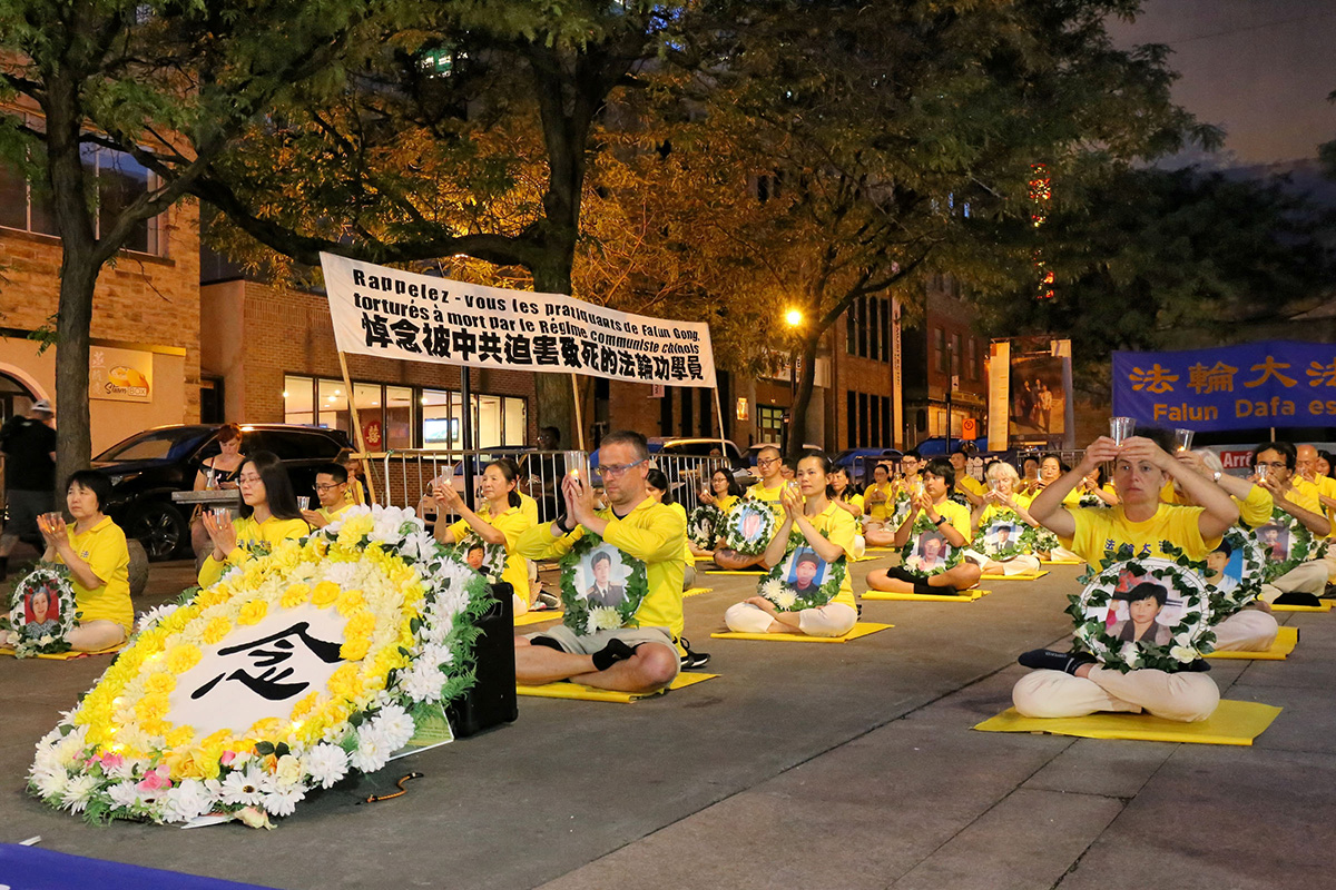 【明慧网二零二二年七月二十一日】二零二二年七月十九日,加拿大魁北克部分法轮功学员在蒙特利尔唐人街举行烛光夜悼集会活动,纪念被中共迫害致死的同修,呼吁解体中共,结束长达23年的迫害。
