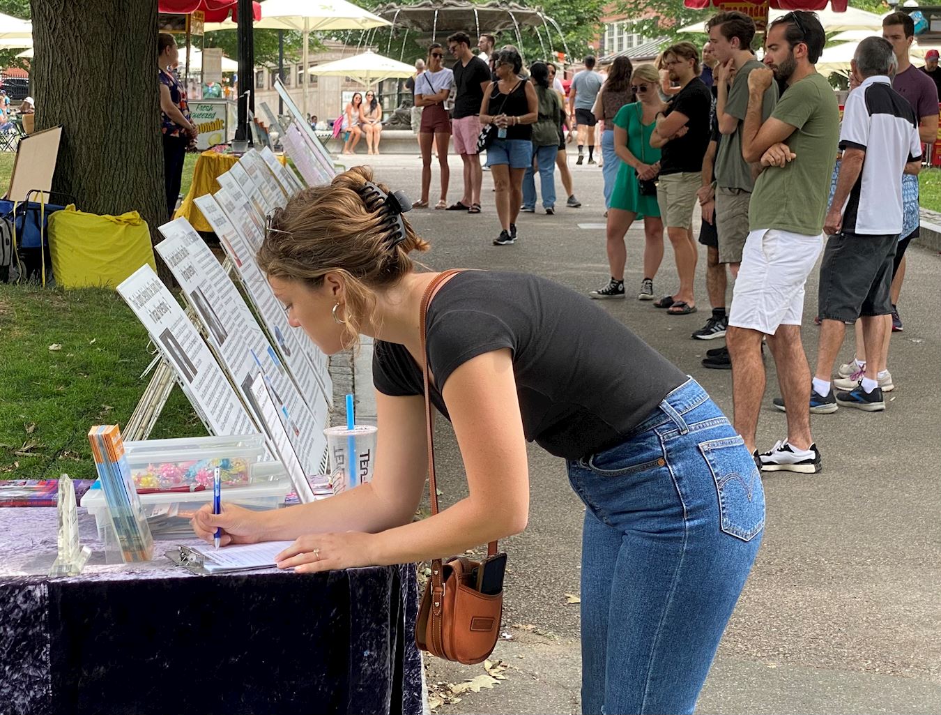 【明慧网二零二二年七月二十一日】(明慧记者程德美国麻州波士顿报道)今年七月二十日,是法轮功反迫害二十三年周年。二零二二年七月十六日,波士顿法轮功学员,在波士顿公园举行反迫害二十三年集会、并以真相视频、海报展、征签、集体炼功等方式,揭露中共迫害法轮功的反人类酷行,呼吁政府、民众及社会团体共同制止迫害。