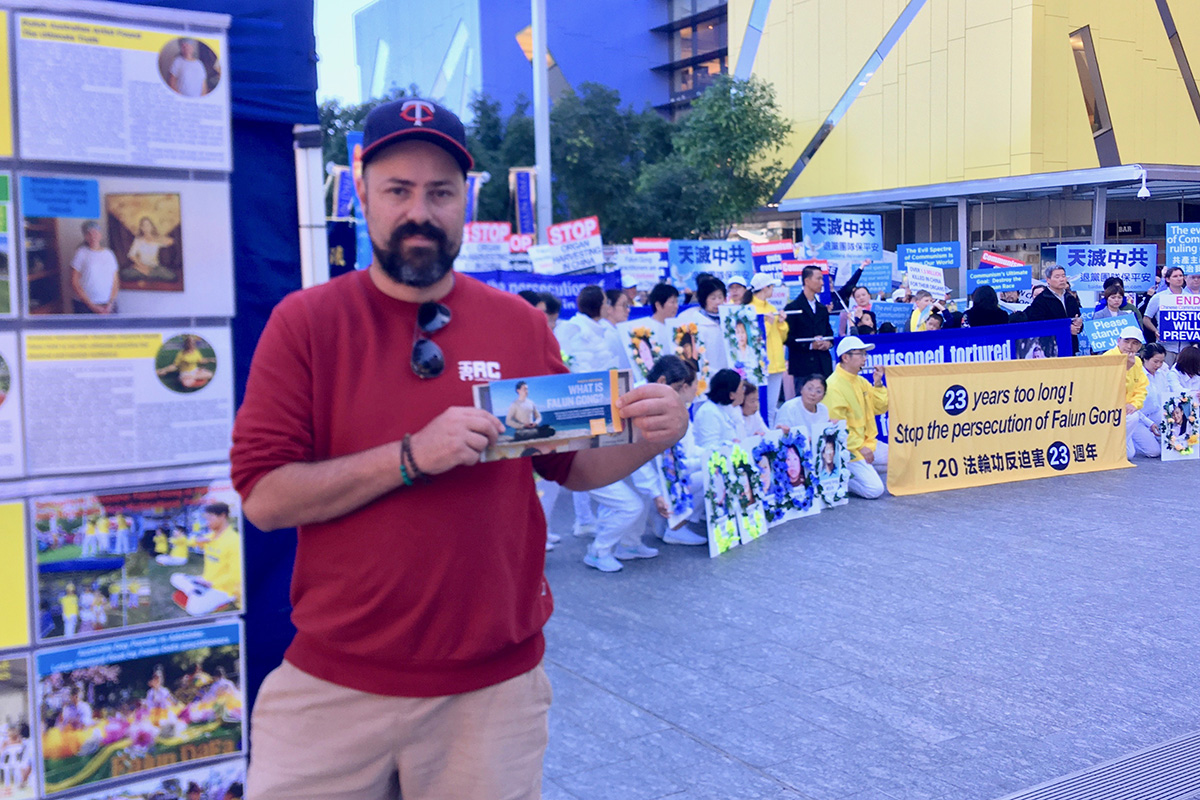 他说:“让我感到充满希望的是,法轮功学员承受了这么多,仍在强有力地把这样的讯息带到世界其它地方。我们必须站出来对抗邪恶。我们不能坐视不理、让邪恶当道。”