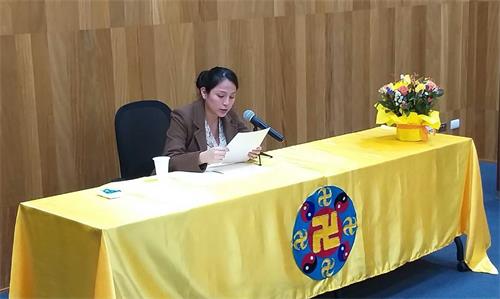 朱莉娅·康德纳(Julia Condeña)是一名小学老师,她在交流中谈到,二零一七年通过朋友的介绍开始走入大法修炼,第一次听炼功音乐开始炼功时,她就感到一股能量通透全身。修炼前因为身体不好,她总是感到沮丧、焦虑、恐慌、紧张、疲惫和不安,常常抱怨,这不仅影响她的工作,也影响了她的家庭。