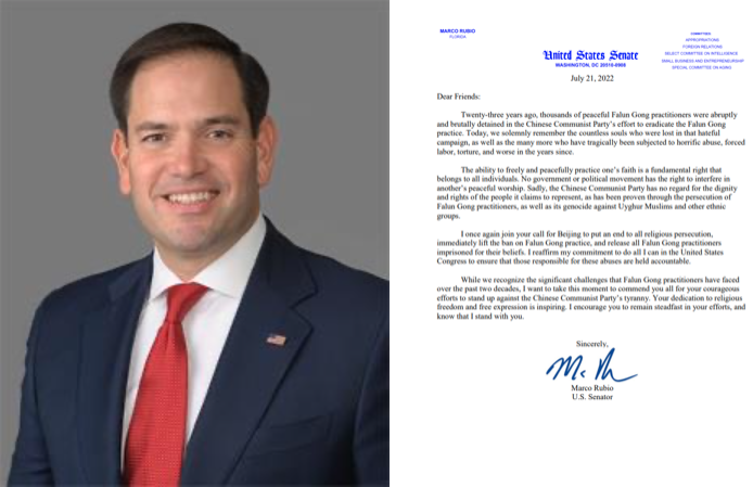 ![]() 图1:佛州参议员马可·卢比奥致支持信。他在支持信中说:“我重申我的承诺,我会在美国国会尽我所能确保追究那些对这些侵权行为负责的人的责任。” |
