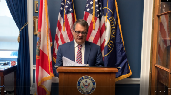 图5:佛罗里达州第十二选区联邦众议员戈斯·比利拉基斯(Gus M Bilirakis)在法轮功反迫害二十三年之际,通过视频表达他对法轮功的支持。