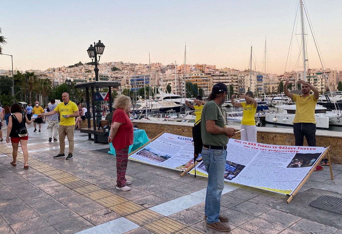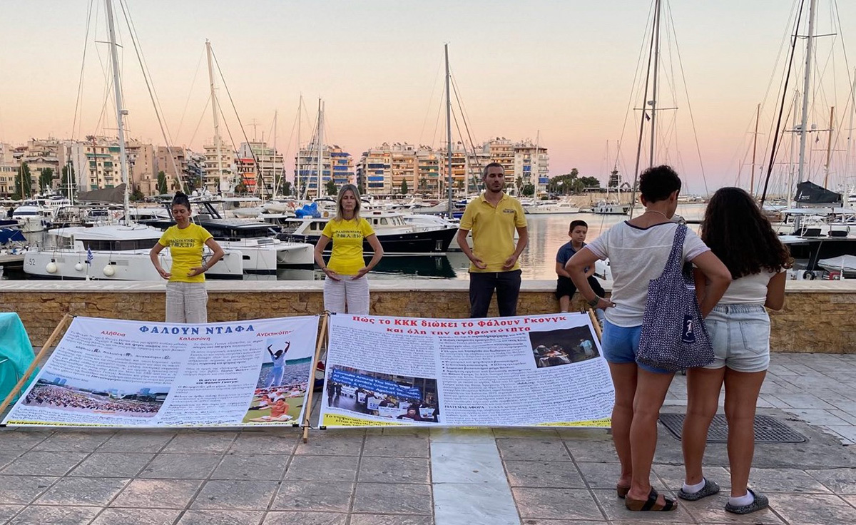 比雷埃夫斯港是希腊最大,地中海第二大港口,被誉为“欧洲南大门”。法轮功学员此次活动在港口区的商业街。尽管天气炎热,依然有行人三三两两经过,络绎不绝。在阅读展板或传单后,人们普遍对中国发生的法轮功学员被迫害之事表示谴责。