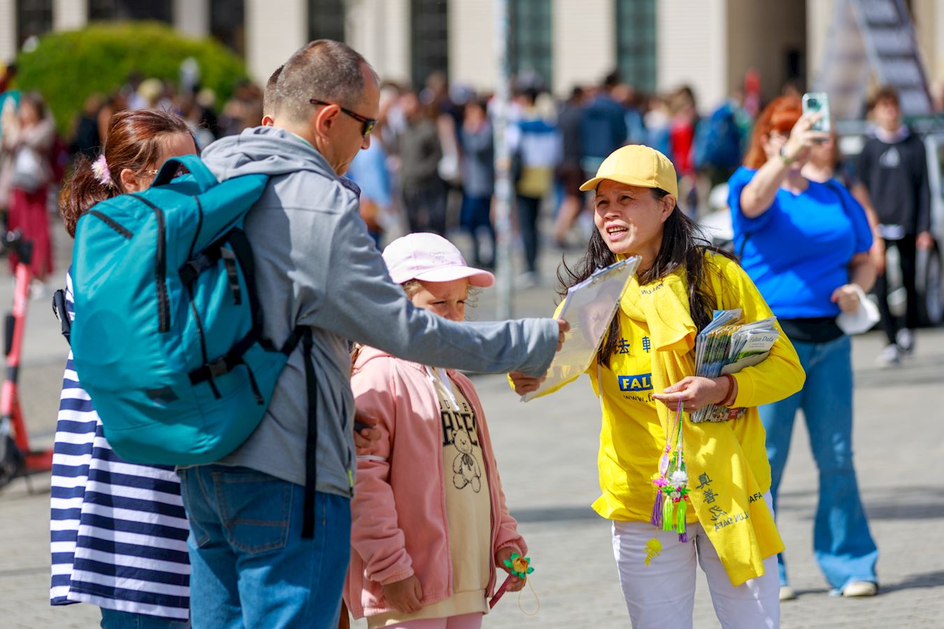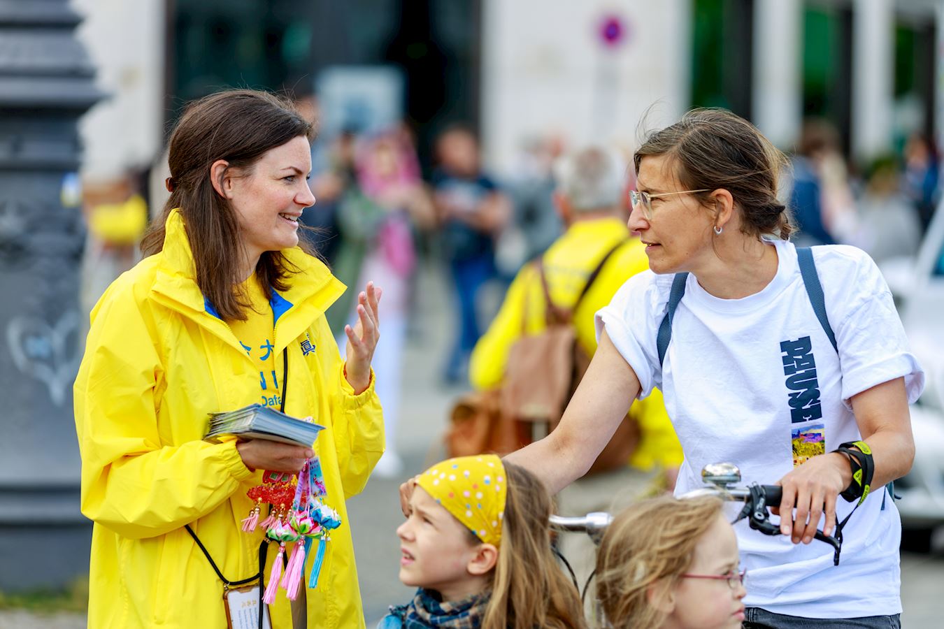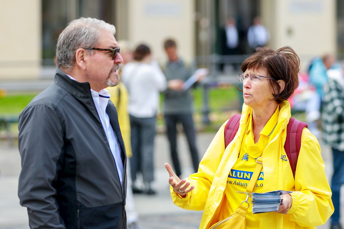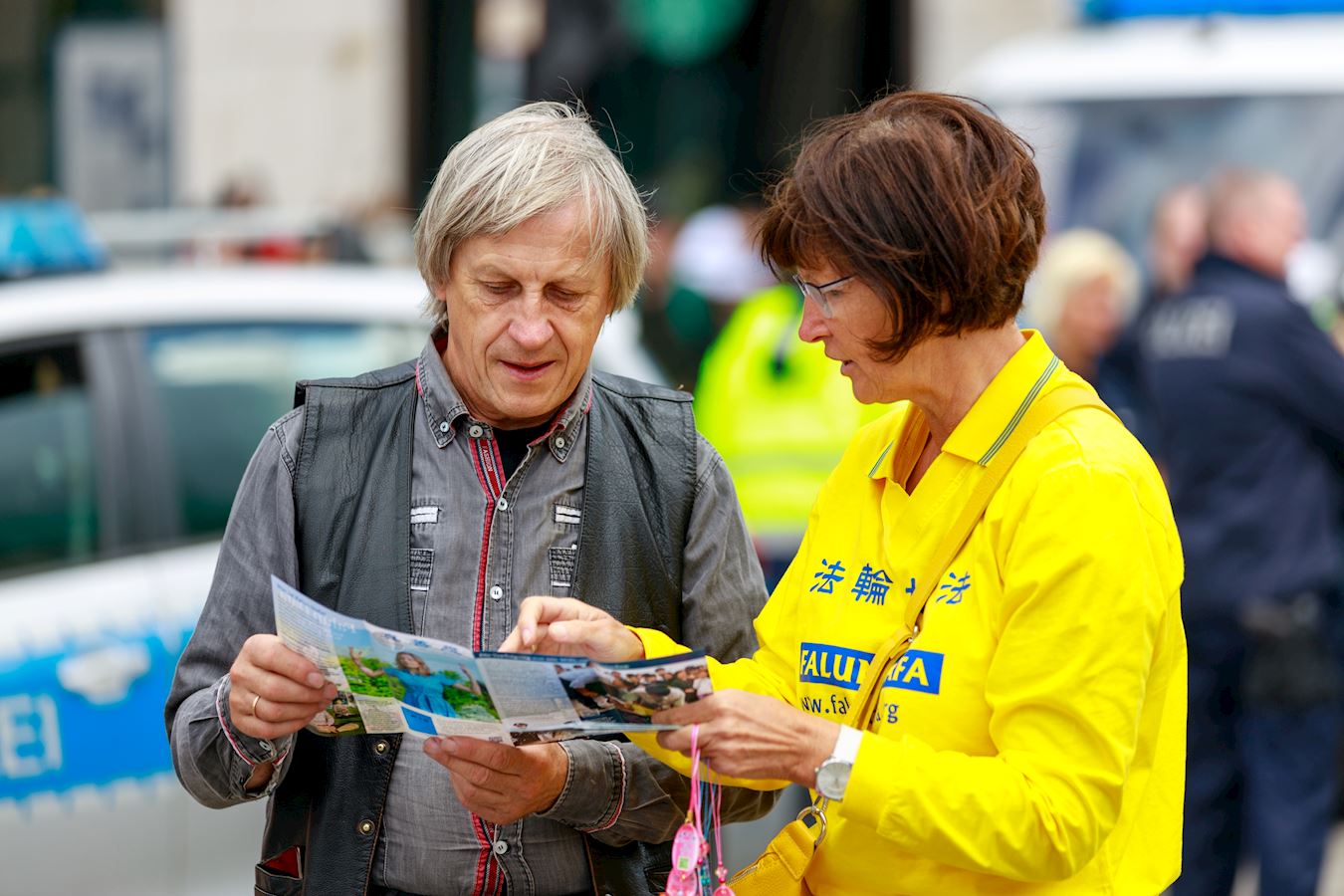 “他们很和平的与世界共处,给我们留下很深印象。”霍夫柔格在广场上观看了功法表演,也阅读了传单,“了解到法轮功学员在中国受迫害的悲惨遭遇,所以我们想要支持他们。”