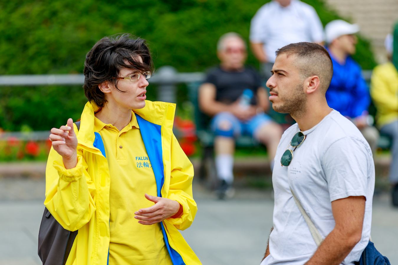 来自柏林的IT工程师史蒂凡(Steven M.)签名声援法轮功学员反迫害,之前,他和一位法轮功学员交谈了很长时间。“我看到这个集会,还有人展示怎么炼功。我自己也打坐,因此我很想多了解一些情况。我跟一位很友好的女士交谈,她跟我介绍了很多,包括法轮功的原则真、善、忍,这对我很有吸引力。”