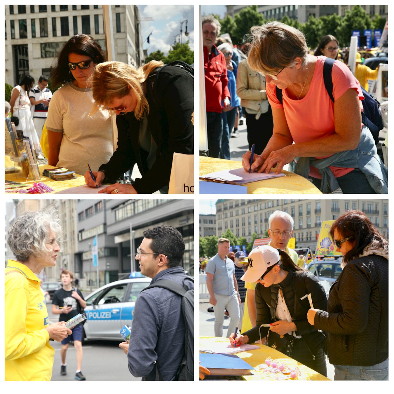 先生说:“我们希望通过签名能够让更多的人知道有这样的事情发生,知道有这样的一群人在为自由而抗争。”太太说:“这关系到人权,不仅仅关乎中国,这也和美国、德国有关,所有人都与此有关。我们现在在德国,或许一个来自美国的签名能够得到十个来自德国的签名,通过这十个能继续得到上百个美国的签名。越多的人了解,民众的力量就越大,我们需要这份力量来互相帮助。”