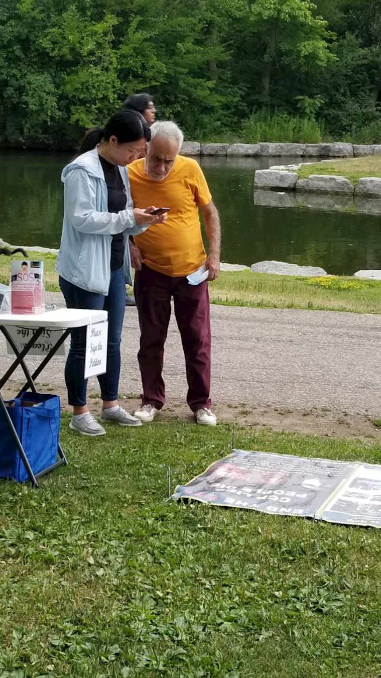 二零二二年七月二十日,在反迫害23年的日子里,法轮功学员再次来到维多利亚公园,在摆上展板和征签表后,也摆上了蜡烛,以此来悼念为了真理而牺牲生命的法轮功学员,同时也呼吁善良的人们了解真相,早日结束这场迫害。很多有缘、善良的人们在这里了解了法轮功的真相,很多人都纷纷主动在征签板上签上停止迫害的心声。