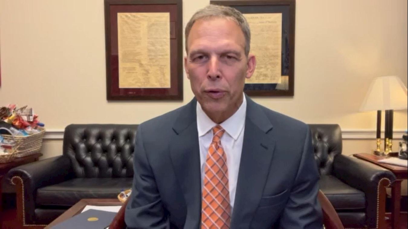 '图1:宾州共和党籍联邦众议员、新任众议院自由党团(House Freedom Caucus)主席斯考特·佩里(Scott Perry)透过视频表达他的支持。'