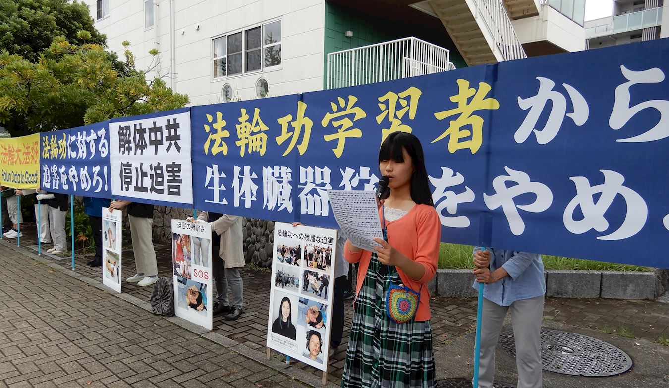 法轮功学员以宣读声明文的形式,向日本民众揭露中共对法轮功空前绝后的人权迫害的同时,也呼吁国际社会有正义良知的人士看清中共本质,共同携手制止中共专制暴政。