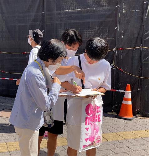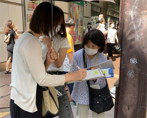 有位来自韩国的大学生听完学员的说明后,用流利的日文说:“我是韩国人,正在福冈的一所大学读书。我没想到中国竟然发生如此严重的人权迫害,太可怕了。我的签名能够成为一份正义的力量的话,我就愿意签。”