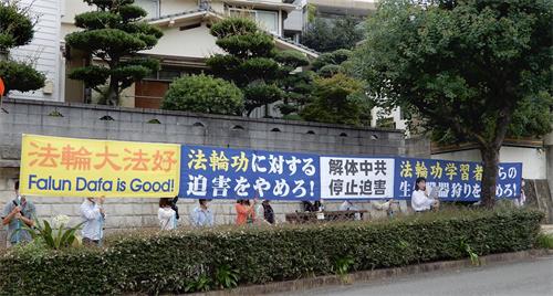 三连休的最后一天,七月十八日熊本法轮功学员来到了福冈和长崎中领馆前,打开揭露中共迫害法轮功的真相展板和横幅,抗议中共对法轮功长达二十三年之久的残酷迫害。