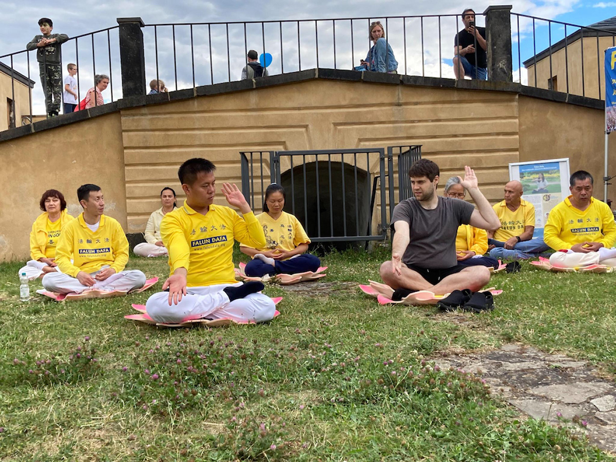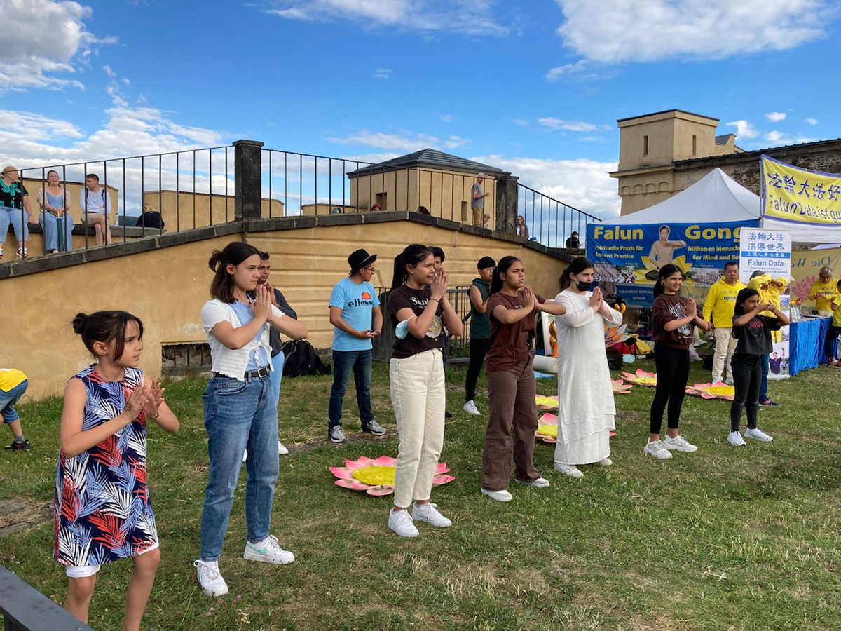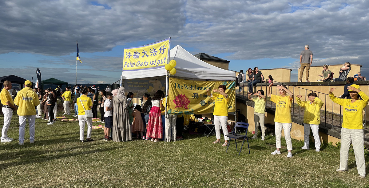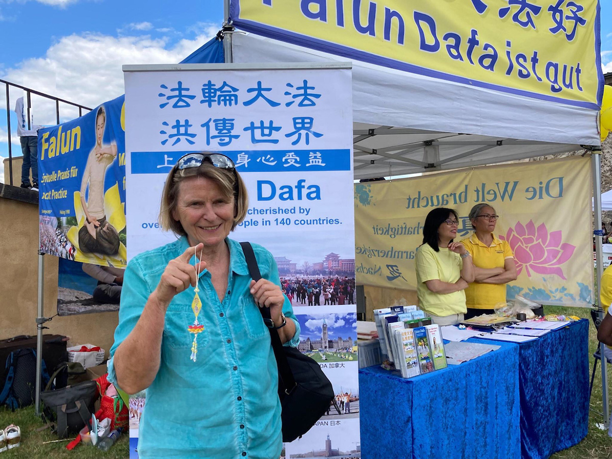 施特菲(Steffi)看到舞台上的功法展示后,来到了法轮功展台。她是医务护理教师,学校里也常有中国进修学生。她说:“(功法)展现着平和,放松的氛围,我对此很感兴趣,所以来了。”她听说法轮功在中国被迫害及活摘器官的事后,马上签了名并说:“我认为这太糟糕了,我还要对此更关注一些。”