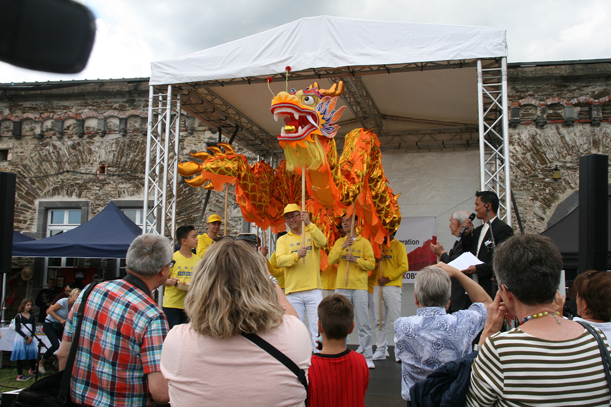 科布伦茨(Koblenz)是坐落在莱茵河畔的一座文化古城,多元文化仲夏节已经举办了多年,各族民众通过展现各自文化增进了解,促进移民融入德国社会。今年的文化节在一个近两百年历史的古堡上举行,十几个民族在展位和舞台上得以展示各自的文化。