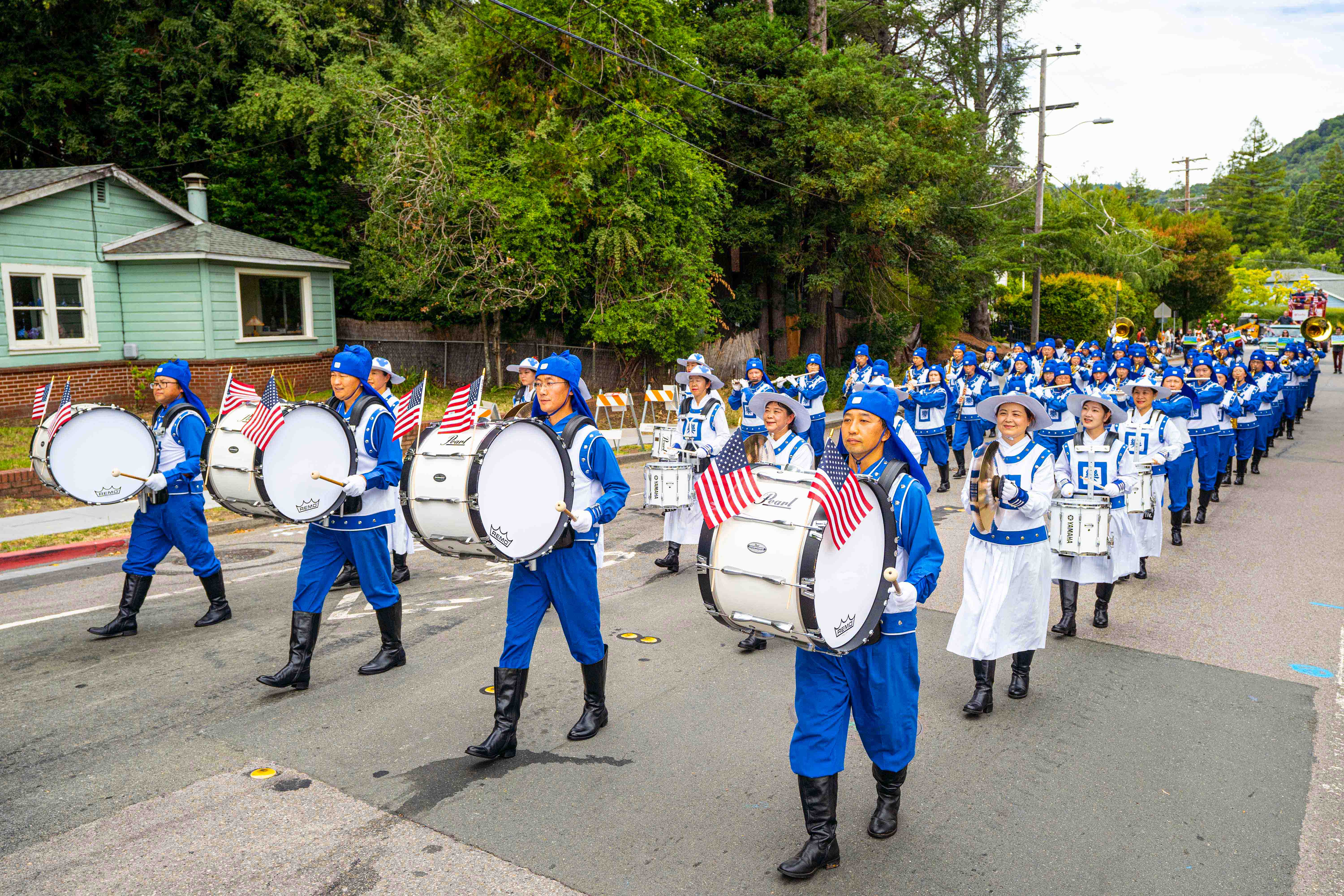 拉克斯波市(Larkspur)位于旧金山市以北,这里依山傍水、环境秀丽。七月四日,由旧金山湾区法轮功学员组成的美西天国乐团应邀参加这里一年一度的独立日庆祝游行,为当地民众带来了《法轮大法好》、《佛恩圣乐》、《星条旗永不落》、《凯旋》等乐曲。许多观众表示,天国乐团的表演令人印象深刻,天国乐团是最棒的队伍。