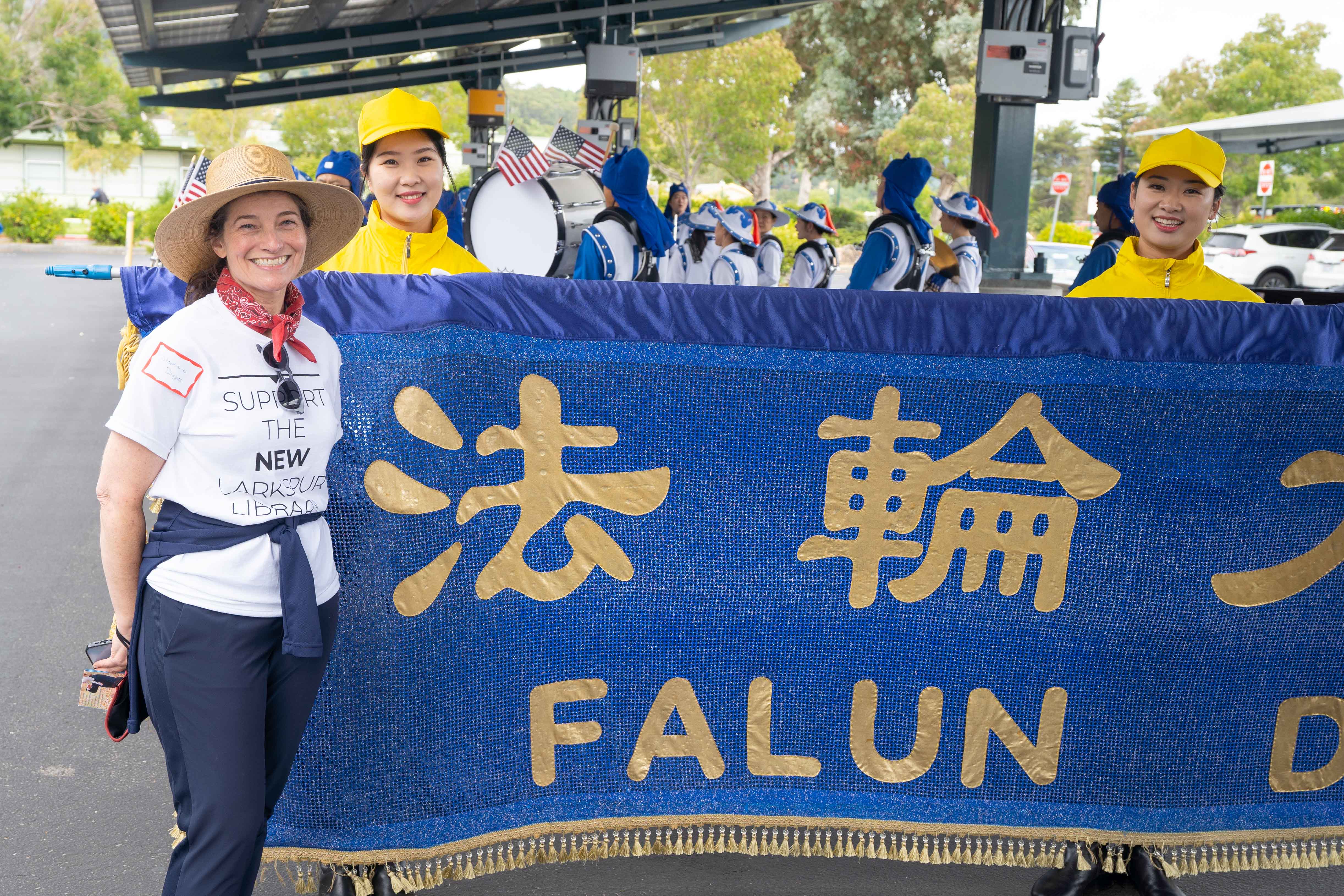 Stephanie Douglas女士也参加当天的游行,她的队伍是支持当地图书馆的。她表示,非常喜欢法轮功的队伍,“我听说过法轮大法,法轮大法非常好,我非常高兴他们来参加游行。”