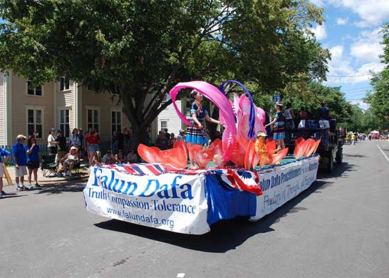 七月四日,美国罗德岛法轮功学员参加了罗德岛州布里斯托尔第237届美国独立日游行,向当地民众传播大法的美好。