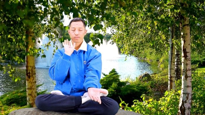 ![]() 图6:法轮功学员李旻在炼法轮功第五套功法 |
