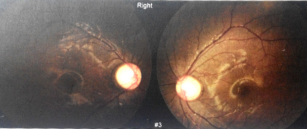 最后医院诊断为双眼发育性青光眼。原来,洪洪歪着脑袋斜着看是因为眼底正前方可能被强光灼伤(见黄斑区),所以只能歪着脑袋才能正确聚焦。