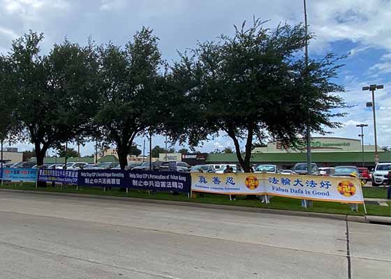 八月二十日,美国休斯顿法轮功学员在中国城百利大道庆祝四亿同胞退出中共邪党组织(简称三退)。