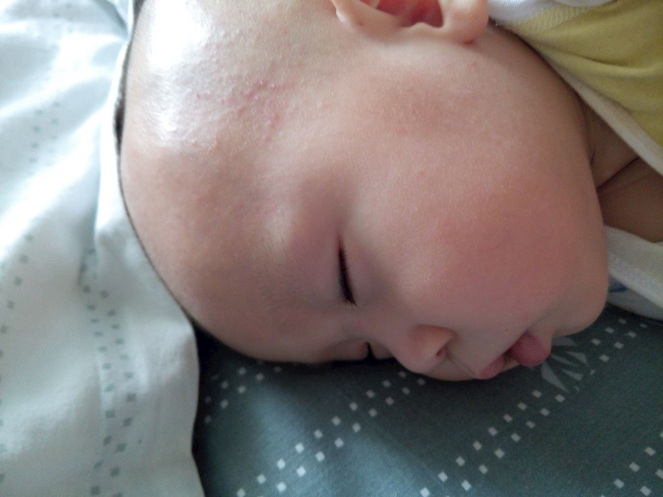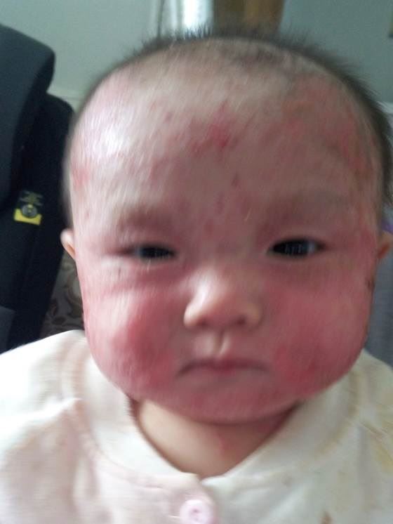 大概是在儿子满月后,身上就开始出现湿疹,但一开始,也没怎么管它。后来偶有出现,妻子都给他用药物抑制住了,但时常反复。直到七、八个月大,外出游玩时,孩子的皮肤出现了问题。