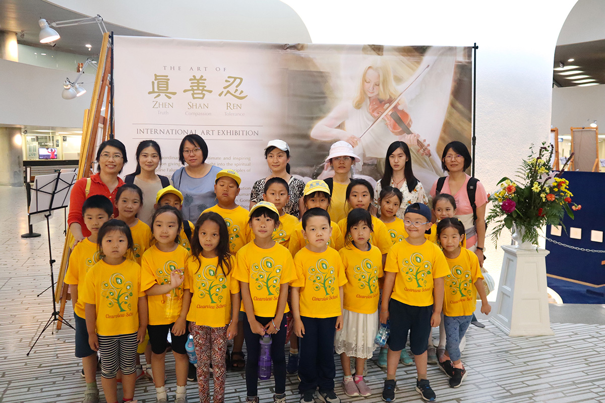 图6~7:多伦多明慧学校夏令营带领学生参加真、善、忍美展