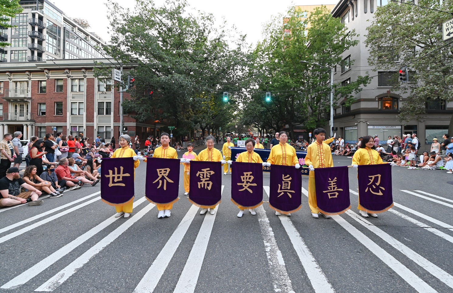 西雅图海洋节是展示多元文化,倡导社会公德,促进族群和谐的盛事。每次都能吸引上百万民众。把海洋节整个活动推到高潮之一的是在傍晚举行的历时几个小时的火炬光芒大游行(Seafair Torchlight Parade)。在西方文化中,燃烧的火炬象征智慧之光驱走无知的黑暗,引领人们走上一条精神升华的正道。因此,修真、善、忍的大法学员的参与就显得极有意义。