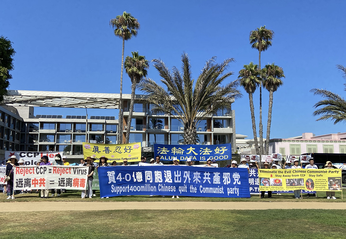![]() 图1~3:二零二二年八月十四日,洛杉矶退党服务中心在著名景点圣莫妮卡海滩集会,祝贺四亿中国人“三退”。 |