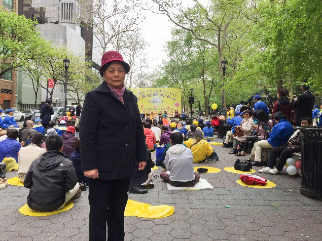 ![]() 图6:沈阳法轮功学员李殿琴学法轮功获新生。图为她在联合国公园庆祝“5.13世界法轮大法日”。 |