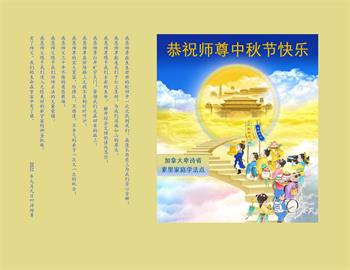 加拿大魁北克、温哥华、蒙特利尔、麦克默里堡、卡尔加里、多伦多、温莎市、渥太华、亚伯塔省、维多利亚等地大法弟子恭祝师尊中秋快乐!