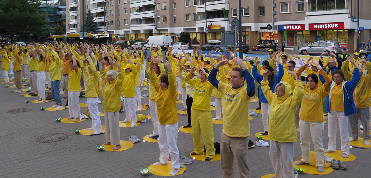 三十五国学员汇聚华沙中使馆前 呼吁制止迫害