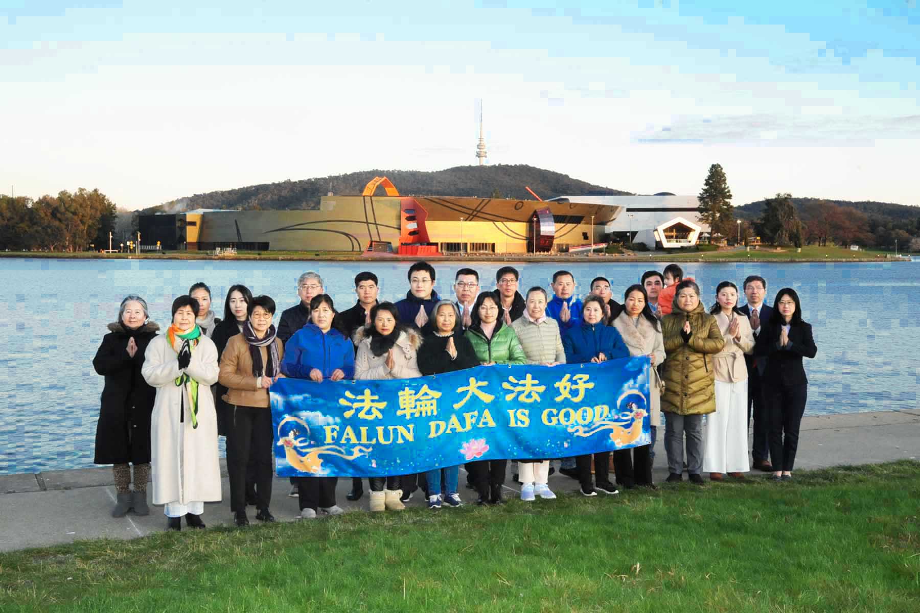 ![]() 图1:澳洲堪培拉部份法轮功学员在格林湖畔的国家博物馆前,恭祝师尊中秋节快乐! |