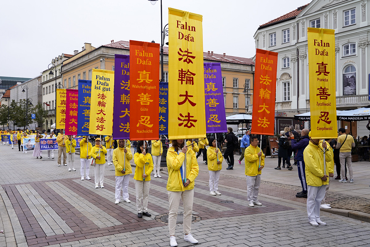 【明慧网二零二二年九月十二日】(明慧记者周文英波兰华沙报道)二零二二年九月九日和十日,欧洲法轮功学员在波兰首都华沙进行了两次大型游行活动。游行队伍经过了波兰政府机构集中地段以及华沙的重要旅游景点、闹市区和古城区,所到之处,受到波兰民众和游人的喜爱。
