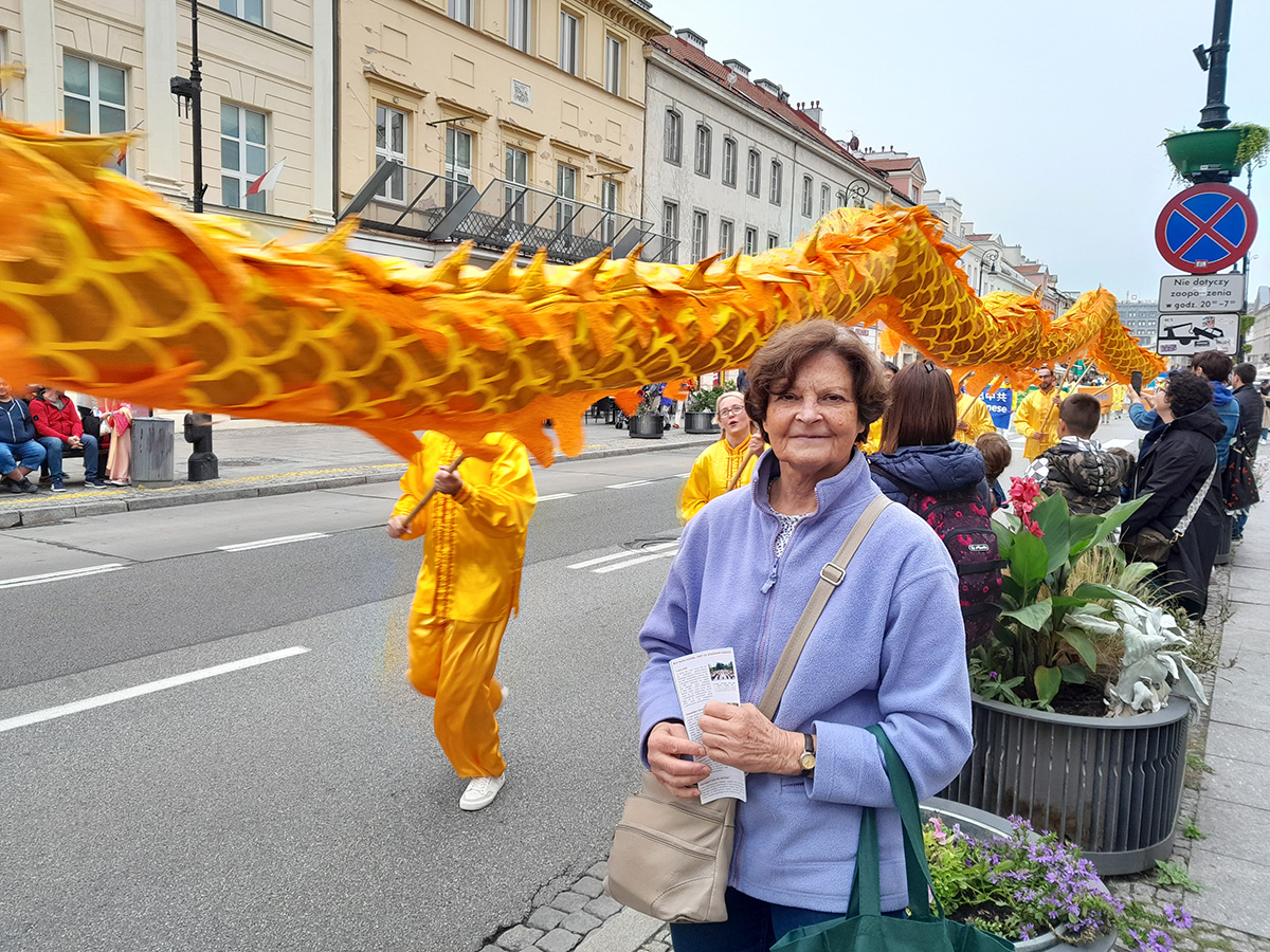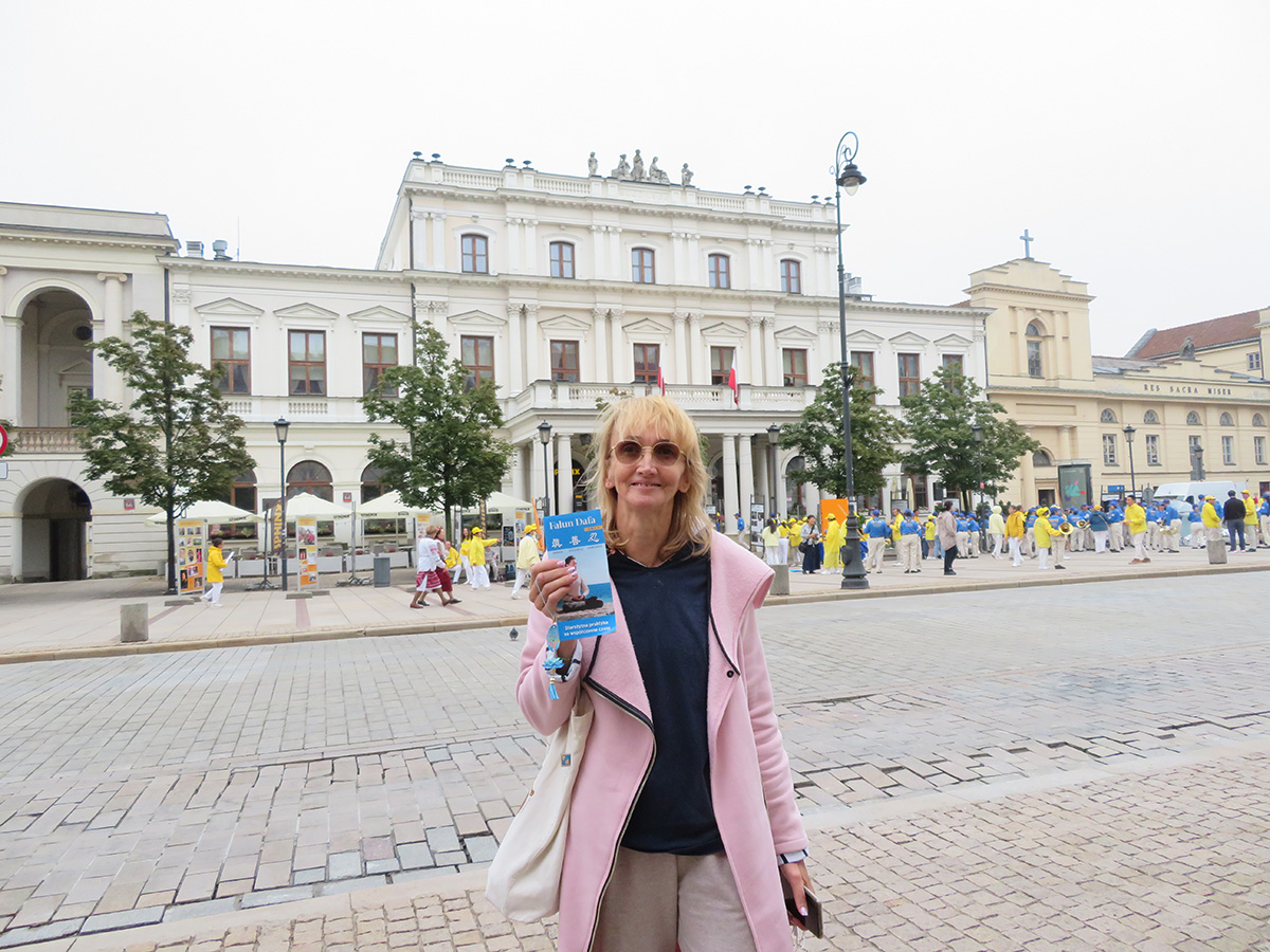 贝阿达(Beata)在能源行业工作,在法轮功游行结束地点一克拉科夫(Krakowskie Przedmieście)街,贝阿达遇见了法轮功。她认为法轮功游行,“表达人们的想法,这是一件很好的事情。人们表达他们在承受迫害,这很重要,他们没有无动于衷。这个游行活动在波兰进行,说明波兰人对此(法轮功)是支持的。”