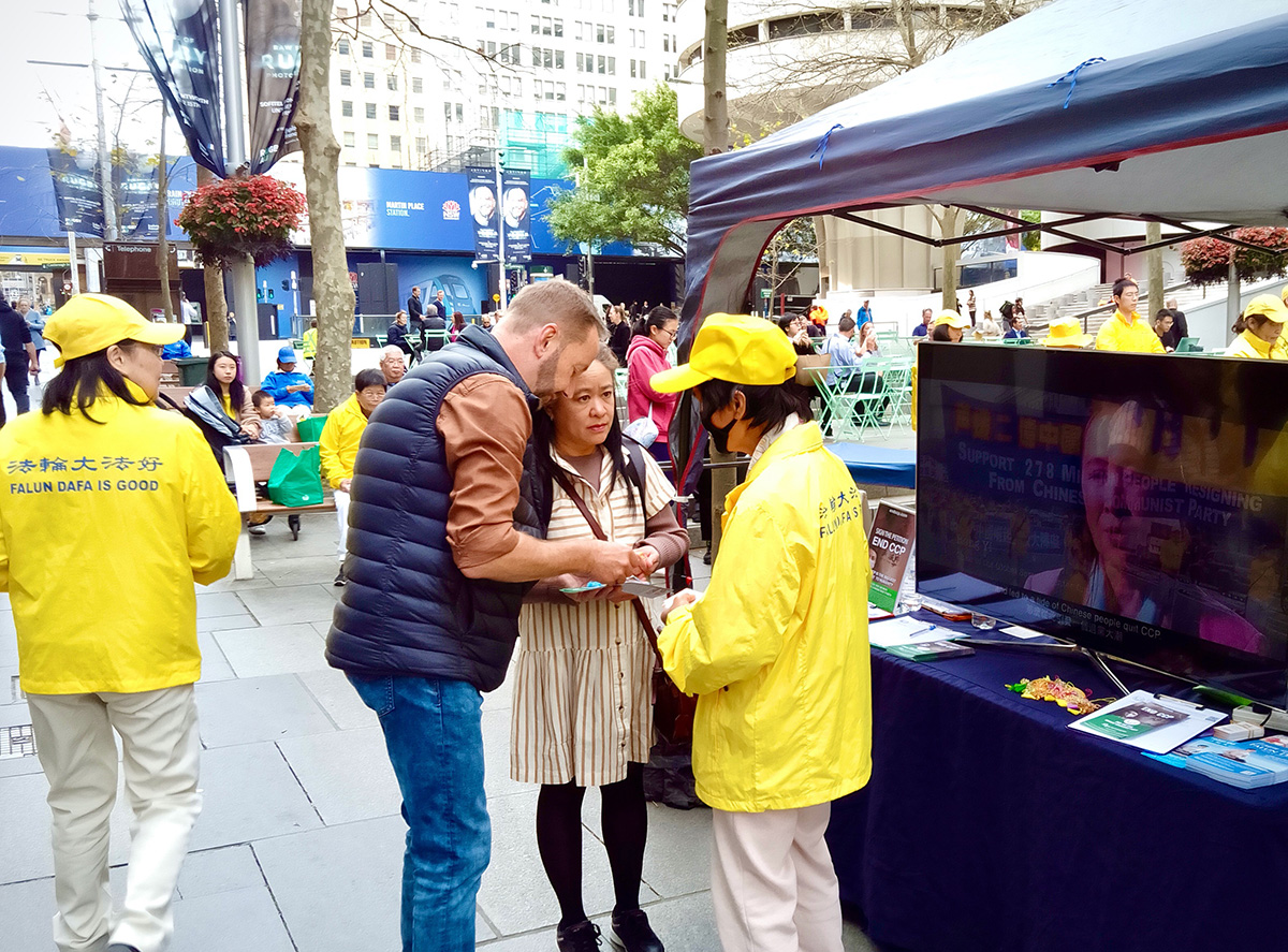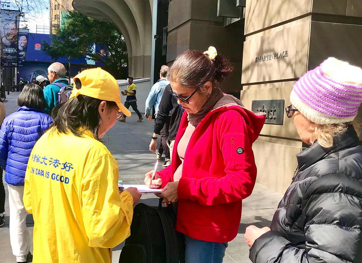 图16~18:悉尼民众聆听真相,纷纷签名声援法轮功,谴责中共迫害。
