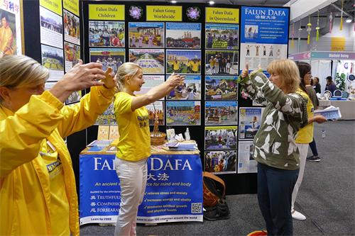 【明慧网二零二二年九月十五日】(明慧澳洲昆士兰记者站报道)二零二二年九月九日至九月十一日,澳洲昆士兰大型的“心智、身体和精神博览会”(Mind Body Spirit Festival),于布里斯本的展览中心(Brisbane Convention & Exhibition Centre)召开。法轮功团体参展并在博览会期间向观众展示了法轮功五套舒缓优美的功法。纯正,祥和的能量场吸引了络绎不绝的民众,他们学炼法轮功、亲身体验到法轮大法的美好,赞誉不绝。