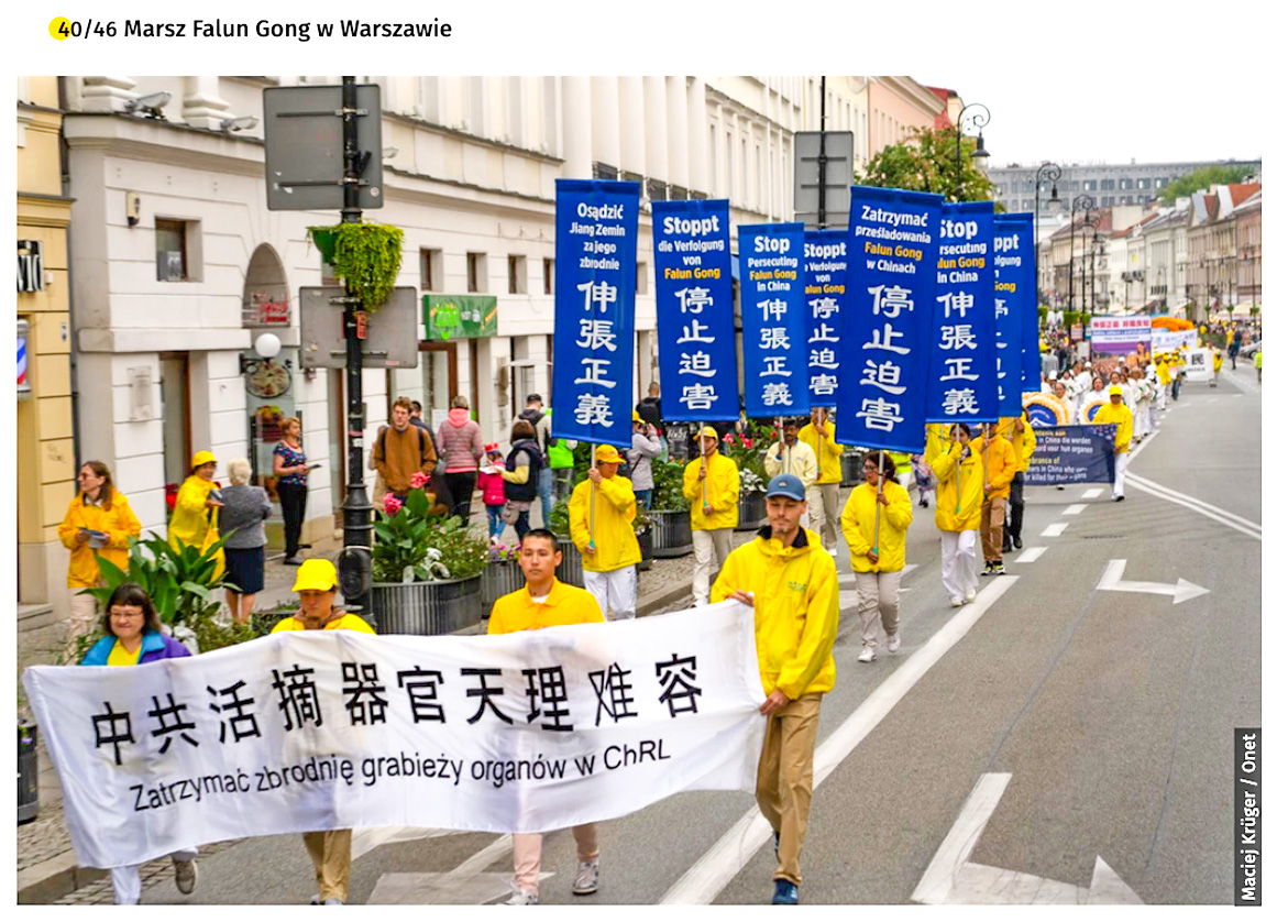 波兰著名网站Onetime.pl以“一九九九年中国(共)侵犯人权周年 法轮功华沙大游行”为标题,报导了九月九日的游行活动,并配以四十六张游行队伍的图片,场面壮观,气势庞大。(https://wiadomosci.onet.pl/warszawa/marsz-falun-gong-w-warszawie-w-rocznice-przesladowan-w-chinach-zdjecia/m0rzerb)