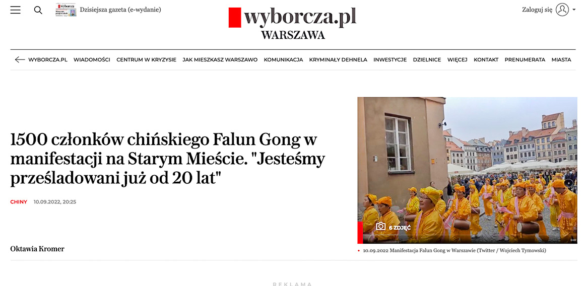 图7~8:波兰《选举报》(Wyborcza.pl Warszawa)长篇报导法轮功学员大游行。